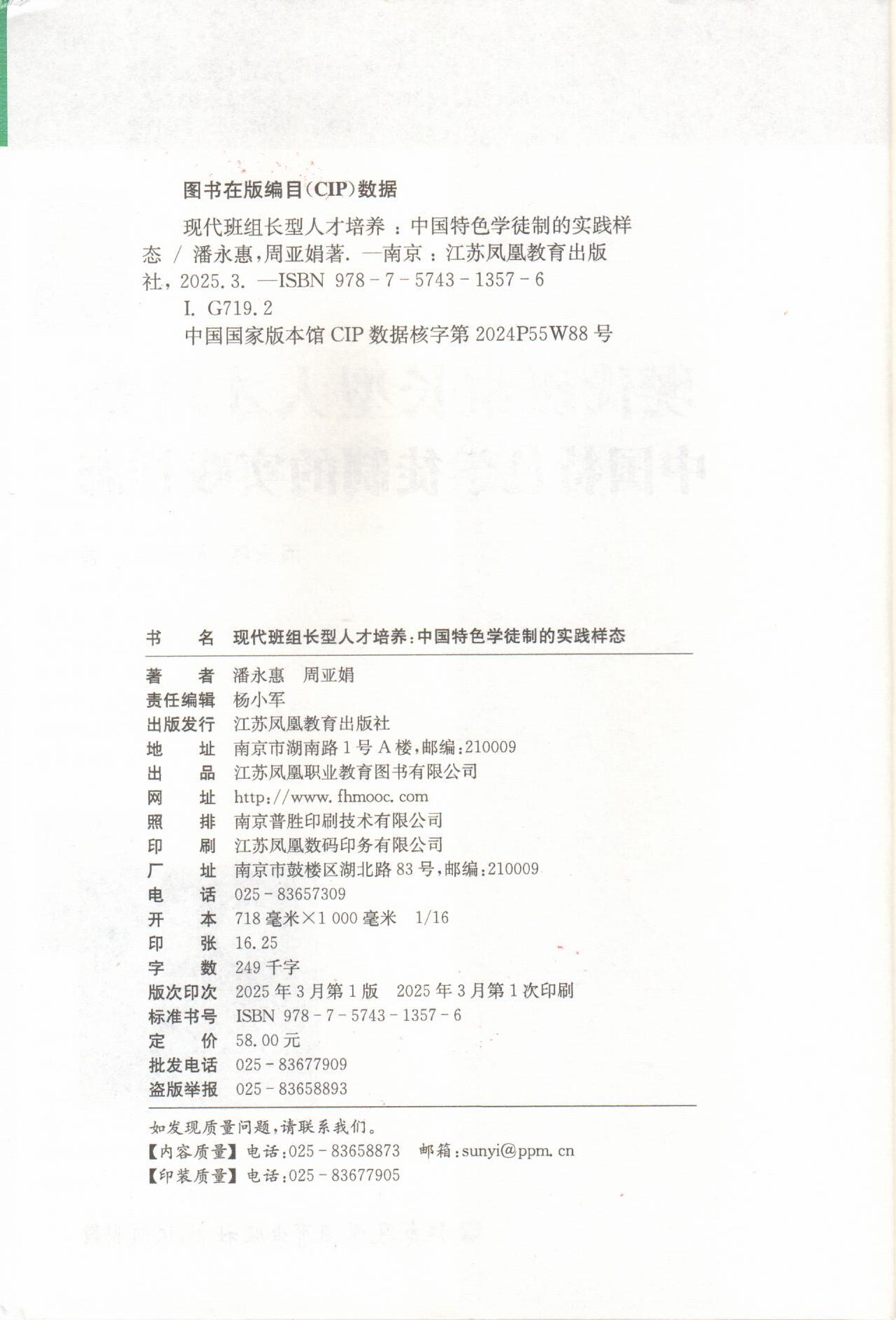 专著:现代班组长型人才培养:中国特色学徒制的实践样态